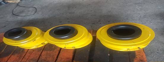 2.安裝過盈配合的聯(lián)軸器(1100~1220)時,沒有固定螺釘。使用烤爐、噴燈、感應(yīng)加熱器或油池來加熱輪轂,*高到135℃,超過200℃,將要損壞密封件。直接加熱輪轂孔時,需要保持恒定運(yùn)動,以免使某一區(qū)域過熱。