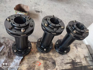 6、接中間膜片聯(lián)軸器與齒式聯(lián)軸器相比,沒有相對滑動,不需要潤滑、密封,無噪聲,基本不用維修,制造較方便,可部分代替齒式聯(lián)軸器。膜片聯(lián)軸器在_上工業(yè)發(fā)達_應(yīng)用已很普遍,在實際應(yīng)用中一般采用接中間軸型,以提高兩軸線偏移補償性能。