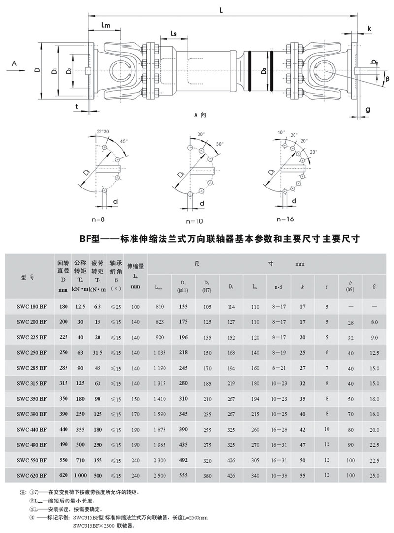 SWC-BF型標(biāo)準(zhǔn)伸縮法蘭式萬(wàn)向聯(lián)軸器